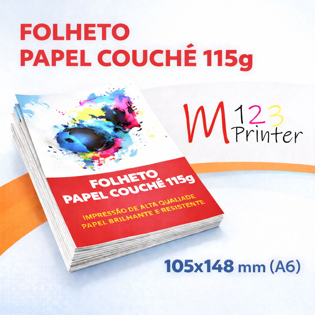 Produza seus materiais com qualidade profissional e destaque sua marca com folhetos impressos em papel couchê 115g, ideal para divulgação de promoções, eventos, empresas e muito mais.